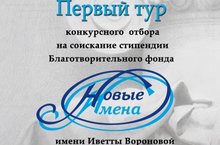 Первый тур конкурсного отбора на соискание стипендии Благотворительного фонда "Новые Имена" имени Иветты Вороновой. 22.03.2021