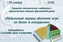 29 ноября 2024 года в 10.00 в нашей школе состоится городское методическое сообщение с практическим показом фрагментов урока преподавателя по классу баяна и аккордеона Луизы Альбертовны Султановой.