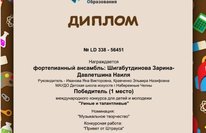 Завершающим мажорным аккордом звучат дипломы учащихся фортепианного отделения ДШИ Давлетшиной Наили и Шигабутдиновой Зарины (преподаватели Кравченко Э.Н. и Иванова Я.В.). -