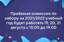 Приёмная комиссия будет работать 19, 20, 21 августа с 15:00 до 19:00.