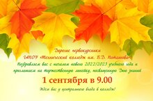 Торжественная линейка для первокурсников ГАПОУ "Технический колледж им. В.Д. Поташова" состоится 1 сентября в 9:00.