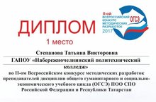 В мае 2017 года на базе ГАПОУ «Нижнекамский агропромышленный колледж» прошел II-ой Всероссийский конкурс методических разработок преподавателей дисциплин общего гуманитарного и социально-экономического учебного цикла.