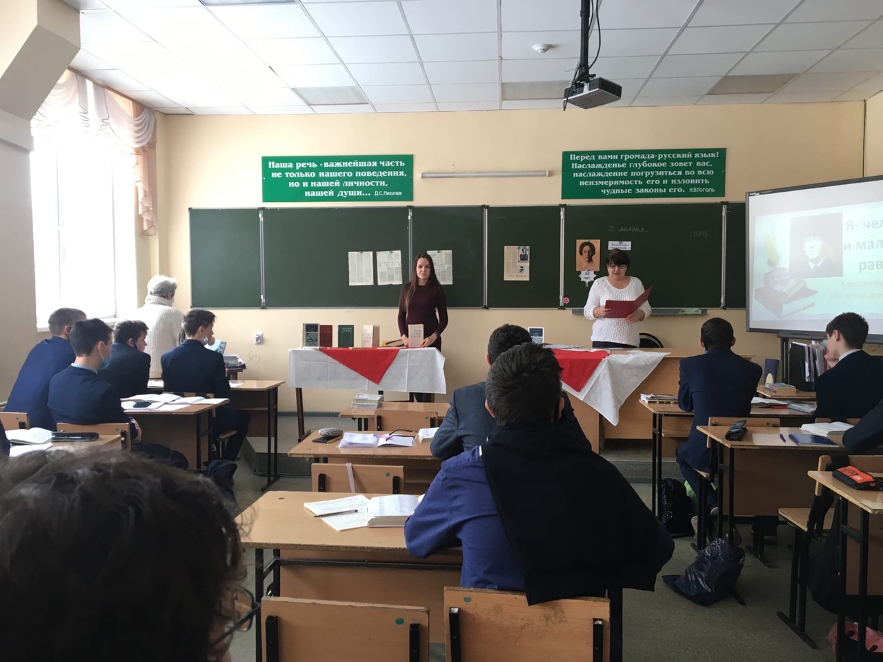 В ходе занятия была показана презентация, содержащая информацию о значимых моментах жизни и творчества поэта, прослушаны лучшие стихи поэта. В рамках мероприятия была также продемонстрирована книжная выставка («Выхожу я в путь, открытым взорам»), подготовленная сотрудниками библиотеки учебного заведения.