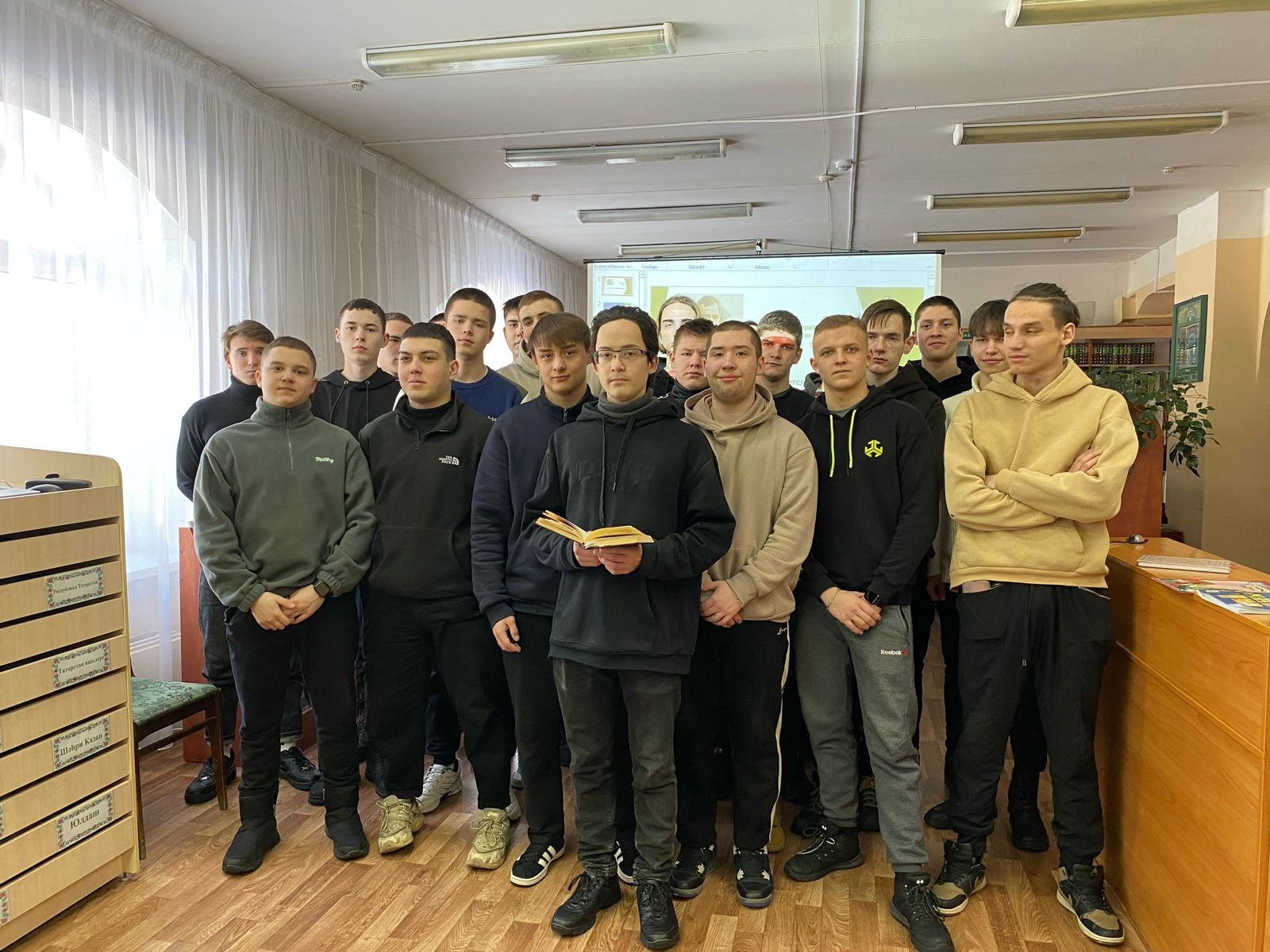 Сегодня группа 209Тэ под руководством преподавателей Садыковой Г.К. и Ахметзяновой Г.Р. приняла участие в двух мероприятиях, посвященных 118-летию героя-поэта Мусы Джалиля: в Центральной городской библиотеке им. М. Джалиля и на митинге памяти поэта в сквере им. М. Джалиля.