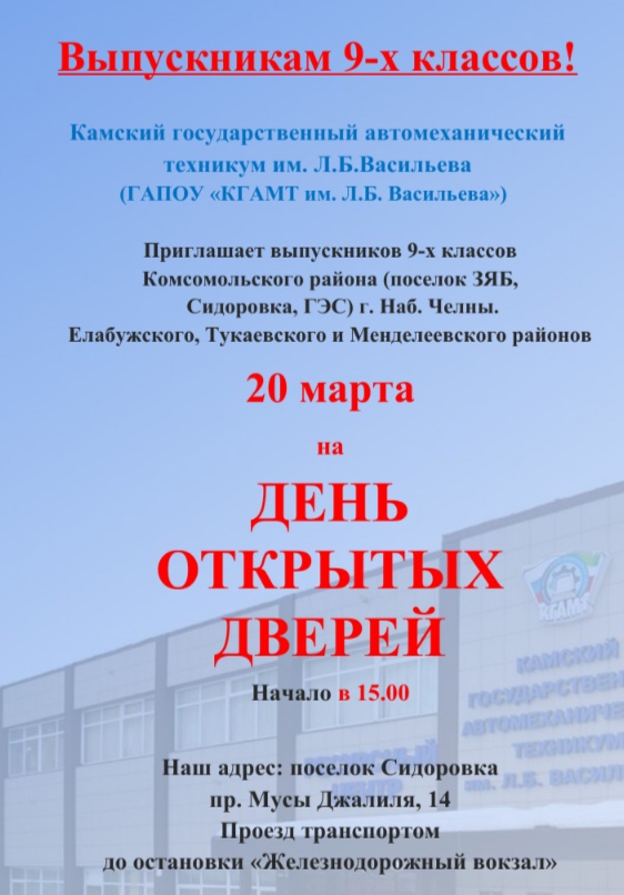 Государственное автономное профессиональное образовательное учреждение "Камский государственный автомеханический техникум имени Л.Б.Васильева"/«Л.Б. Васильев исемендәге Кама дәүләт автомеханика техникумы» дәүләт автоном һөнәри белем бирү учреждениесе