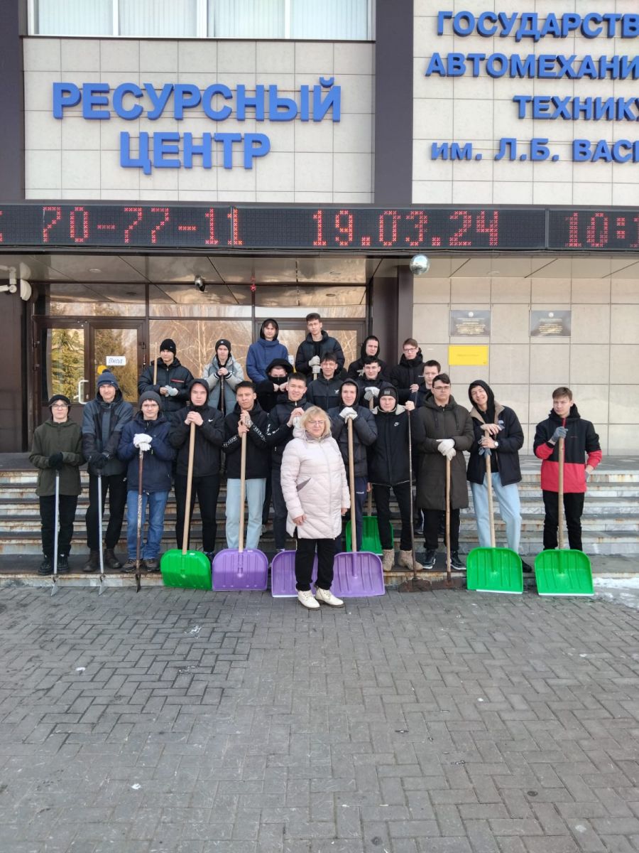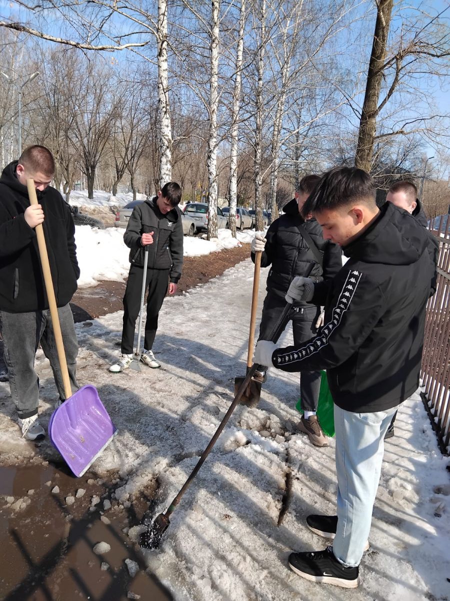 Студенты собрались вместе, чтобы убрать лед! Благодаря их труду территория техникума стала чище и аккуратнее.