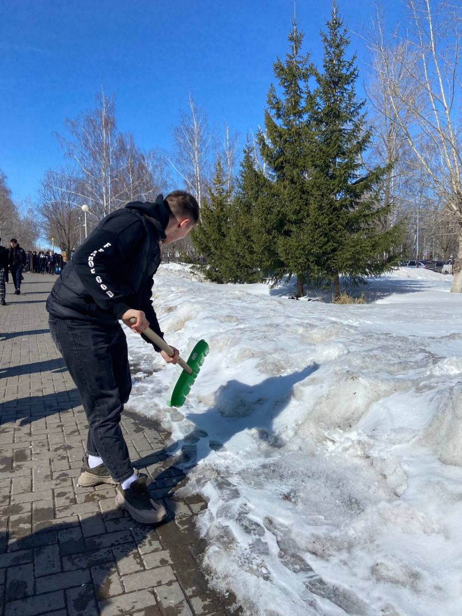 Опубликовано: 30.03.2024Вчера группа 274 А вышла на субботник! Студенты собрались вместе и активно принялись за работу - раскидывали снег, чтобы помочь ему быстрее растаять под лучами весеннего солнца