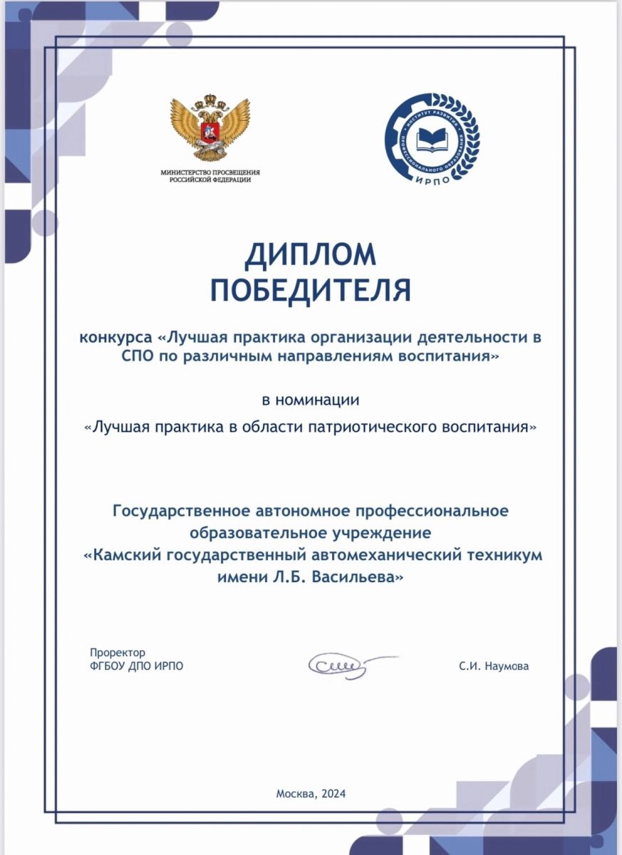 Поздравляем всех участников и организаторов проекта с этой значимой победой! Ваш вклад в патриотическое и профессиональное воспитание молодёжи неоценим и заслуживает наивысших похвал.