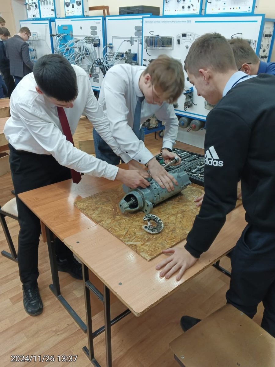 Опубликовано: 26.11.2024Под руководством Газдалиева Ильмира Мирзагалиевича на базе автомеханического техникума 25 студентов получают рабочую профессию слесаря-электрика.