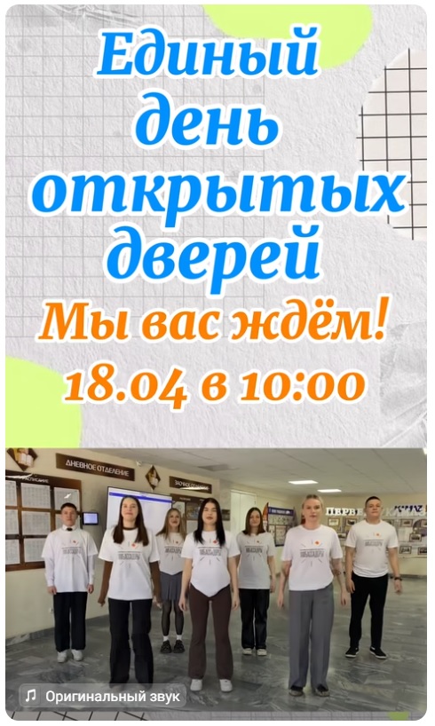 Опубликовано: 17.04.2026Приглашаем всех, кто хочет узнать больше о современных профессиях, познакомиться с преподавателями и увидеть, как проходит учёба в нашем техникуме!