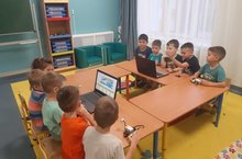 Основой робототехники является алгоритмика, т.е. умение выстраивать цепочку действий, выполнение которых роботом приведете к желаемому результату. Для детей дошкольного возраста 5-7 лет, которые еще не умеют читать, мы используем визуальный язык программирования (вариация языка scratch), в котором программа составляется из картинок- блоков. С помощью этой программы дети могут "оживить" свои постройки.