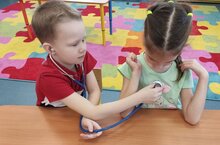 Сегодня мы продолжаем осваивать с детьми подготовтельной группы профессию-врача.В игровой форме дети освоили основы медицинской помощи: учились бинтовать «раненых», делать компрессы и различать лекарственные травы. Наш медицинский работник показал, как слушать сердце с помощью фонендоскопа. И зачитал любимые истории про Доктора Айболита.