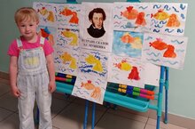 Сегодня с воспитанниками были проведены беседы на тему"Творчество А. С. Пушкина", сделали рисунки " По сказкам А. С. Пушкина", читали его сказки.