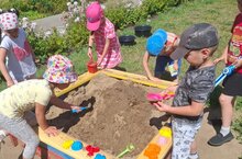 С целью развития воображения, творческого мышления, закрепления знаний о родном городе: кто в нем живет, какой ездит транспорт, какие работают заводы, дети строили родной город в своей песочнице. Затем участники по очереди рассказывают о том, что построили, задавали друг другу вопросы, обменивались впечатлениями об услышанном.