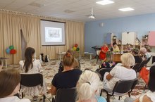 25 августа педагоги ДОУ делились своими наробатками и олпытом работы. В рамках сеинара, старший воспитатель МБДОУ №129 "Белоснежка" показала мастер-класс "Развитие шахматного образования в дошкольном образовательном учреждении". Газизова Эльвира Рахимзяновна, руководитель проекта «Клуб интеллектуального развития дошкольников «Волшебное королевство шахмат» поделилась с присутствующими ходом реализации проекта. Обозначила, что необходимо привлекать спонсоров и грантодателей, тем самым способствовть развитию шахматного образования в ДОУ.