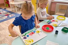 В рамках кружковой работы "Юные волшебники", педагог Хаертдинова А.В. провела занятие нетрадиционное рисование по технике рисование методом тычка с использованием ватных палочек "Весёлая гусеница".