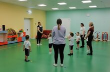 В начале занятия инструктор ЛФК объяснила присутствующим, как правильно начинать упражнения и провела дыхательную гимнастику. Далее участникам был предложен комплекс упражнений с массажными мячами. Он включал в себя общеразвивающие упражнения, которые способствуют укреплению молодого организма. Упражнения были приведены в виде игрового стречинга. Детям эмитационные упражнения очень нравятся. Занятие завершилось упражнениями для расслабления мышц.