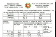 Уважаемые родители! Минобрнауки РТ напоминает о *возможности* отмены учебных занятий в связи с низкой температурой воздуха. Уроки могут быть отменены: в начальных классах при минус 25 градусах, 5-9 классах при минус 27 градусах. Родители принимают решение по обстоятельствам! Для тех детей, которые придут, будут организованы учебные занятия.