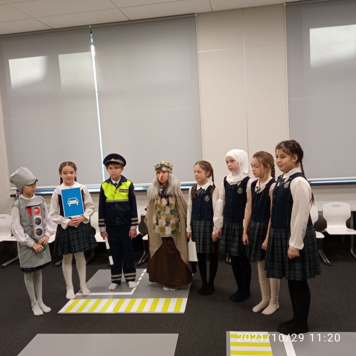 Опубликовано: 09.11.2021 В преддверии осенних каникул учащиеся 3г класса приняли участие в городской акции безопасности дорожного движения «Засветись» — показали сценку