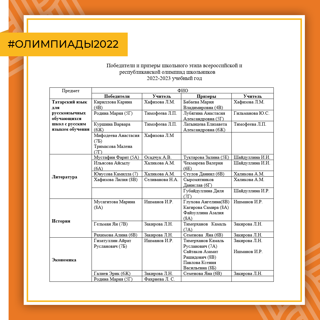 Пред вами победители школьного этапа Всероссийской олимпиады школьников.