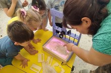 В рамках реализации сетевого проекта «IT-студии в 3-х точках» в мультстудии педагог выстроила в форме «Мультимедийного журнала». Прежде чем приступить непосредственно к рисованию песком, вниманию ребят предложила просмотреть небольшие видеоролики, презентации, познавательные передачи о песке. Ребята узнали, что такое песок, как появился песок в природе, о том, что на Земле есть пустыни и какие растения там растут, о зыбучих и поющих песках, его значении в жизни человека.