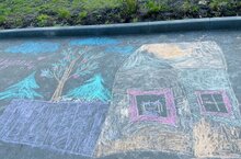». Ребята не только рисовали, но еще были предложены различные подвижные игры, где все дети, независимо от возраста, смогли проявить себя, поучаствовать в играх и зарядиться радостным настроением. Они и танцевали, и находили своими домики, и ездили на паровозике, а также передавали эстафетные флажки. Мероприятие закончилось рисованием ярких рисунков на асфальте! -