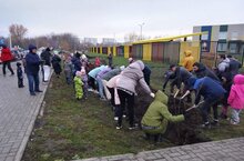 Сегодня в ЖК "Притяжение" прошел субботник по посадке 3000 деревьев и кустарников. Сотрудники, родители, дети детского сада приняли активное участие в данном мероприятии