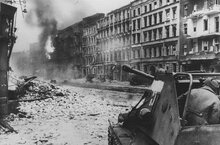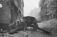 23 апреля 1945 года. Уличные бои в Берлине. Битва за столицу Германии разворачивается с небывалым размахом. Войска 1-го Белорусского фронта продолжают наступление в Берлине. Немцы яростно сопротивляются, бросая в бой десятки батальонов, но советские солдаты идут вперёд, захватывая квартал за кварталом. В этот день захвачены крупный газовый завод и ряд городских улиц. На автострады Берлина хлынула во всю ширь автострады мощная техника Красной Армии — танки, самоходные орудия, бронетранспортеры, автомашины с орудиями и минометами на прицепе, грузовики — все сразу могучим потоком ринулось вперед.