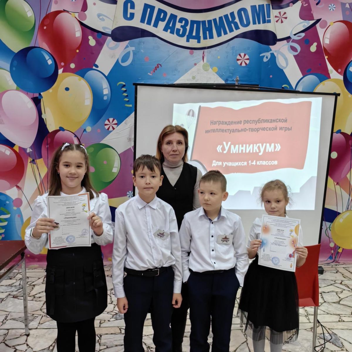 В очном этапе республиканского интеллектуального творческого турнира «Умникум» учащиеся 2А и 3Е класса, в своей возрастной категории, заняли 3 место. Учителя: Хисматуллина Н.Ш., Ефремова Т.А.