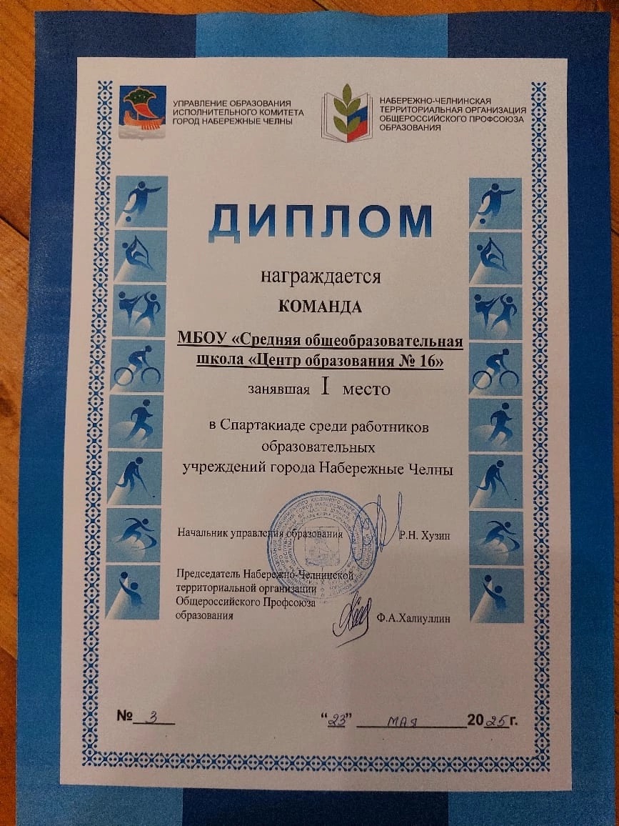 Центр образования № 16 занял 1 место в Общекомандном зачёте Спартакиады работников образования города Набережные Челны 2024/2025 учебного года! Поздравляем наш коллектив и благодарим тех, кто завоевал призовые места на соревнованиях