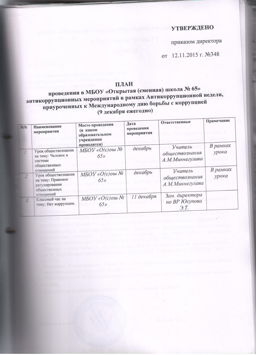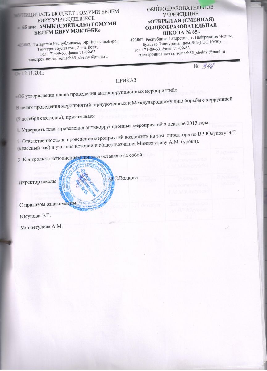 отчет по антикоррупции МБОУ Осош № 65 2015 год