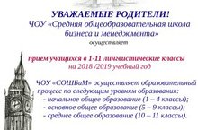 ЧОУ "СОШБиМ" осуществляет прием ПЕРВОКЛАССНИКОВ на 2018 – 2019 учебный год 09.02.2018