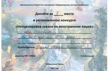 2 место в региональном конкурсе "Инсценировка сказки на английском языке" 01.12.2017