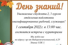 1 сентября - День знаний отделение подготовки квалифицированных рабочих, служащих 29.08.2022