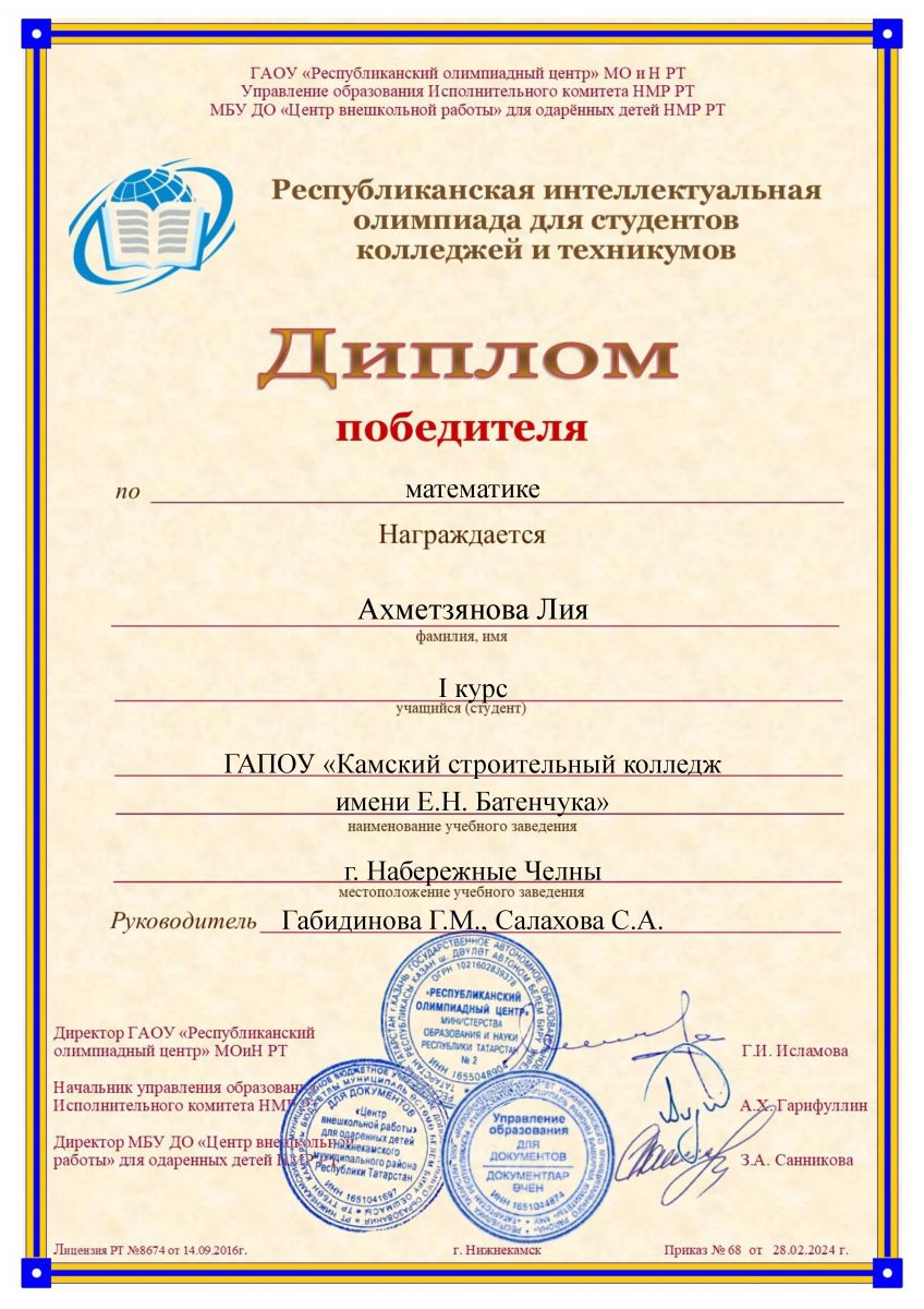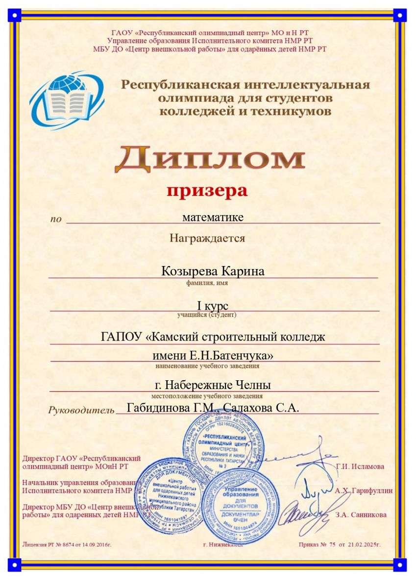 Республиканская интеллектуальная олимпиада для студентов колледжей и техникумов