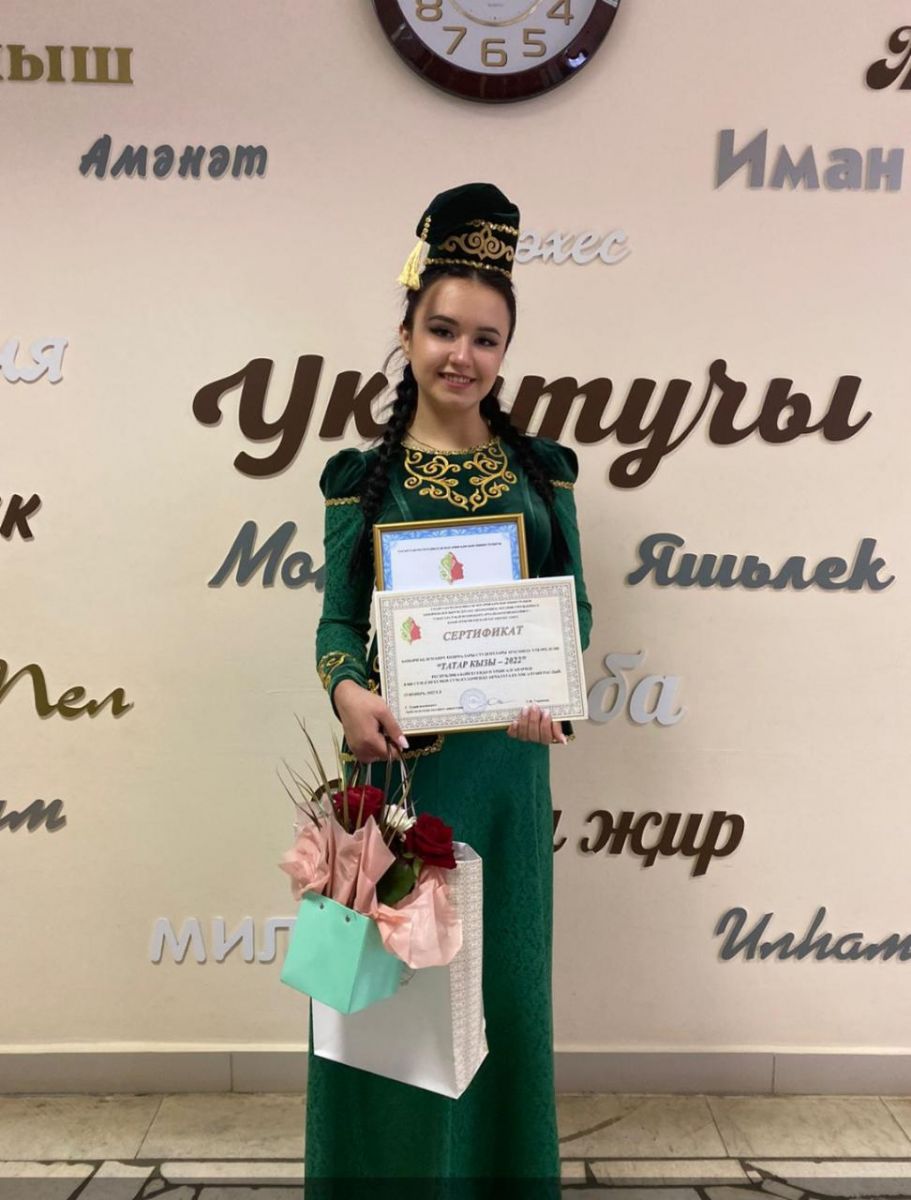 2022 нче елның 15 нче ноябрендә «Татар кызы-2022» һөәри белем бирү оешмалары студентлары арасында республика бәйгесе булып узды. Бәйгенең бурычлары - татар кызының күңел байлыгын һәм иң яхшы сыйфатларын ачу, телгә, мәдәнияткә, татар милләтенең үзенчәлегенә кызыксынуны арттыру, талантлы яшьләргә иҗади потенциалын тормышка ашыруда ярдәм итү. Әлеге чарада педагогия бүлегенең 3 нче курс студенты Абдрахманова Әдилә катнашты. Жюри әгъзалары Әдиләнең талантын, матурлыгын, иҗади чыгышын, сөйләү осталыгын югары бәяләп икенче урын бирделәр. Әдиләне җиңүе белән котлыйбыз һәм киләчәктә дә уңышлар телибез. Җитәкчеләр: Кәрамова А.Җ., Дәүләтшина Г.Б., Сәләхова Ч.Ю. Укытучыларга бәйге җиңүчесен сыйфатлы әзерләүләре өчен рәхмәт белдерәбез!