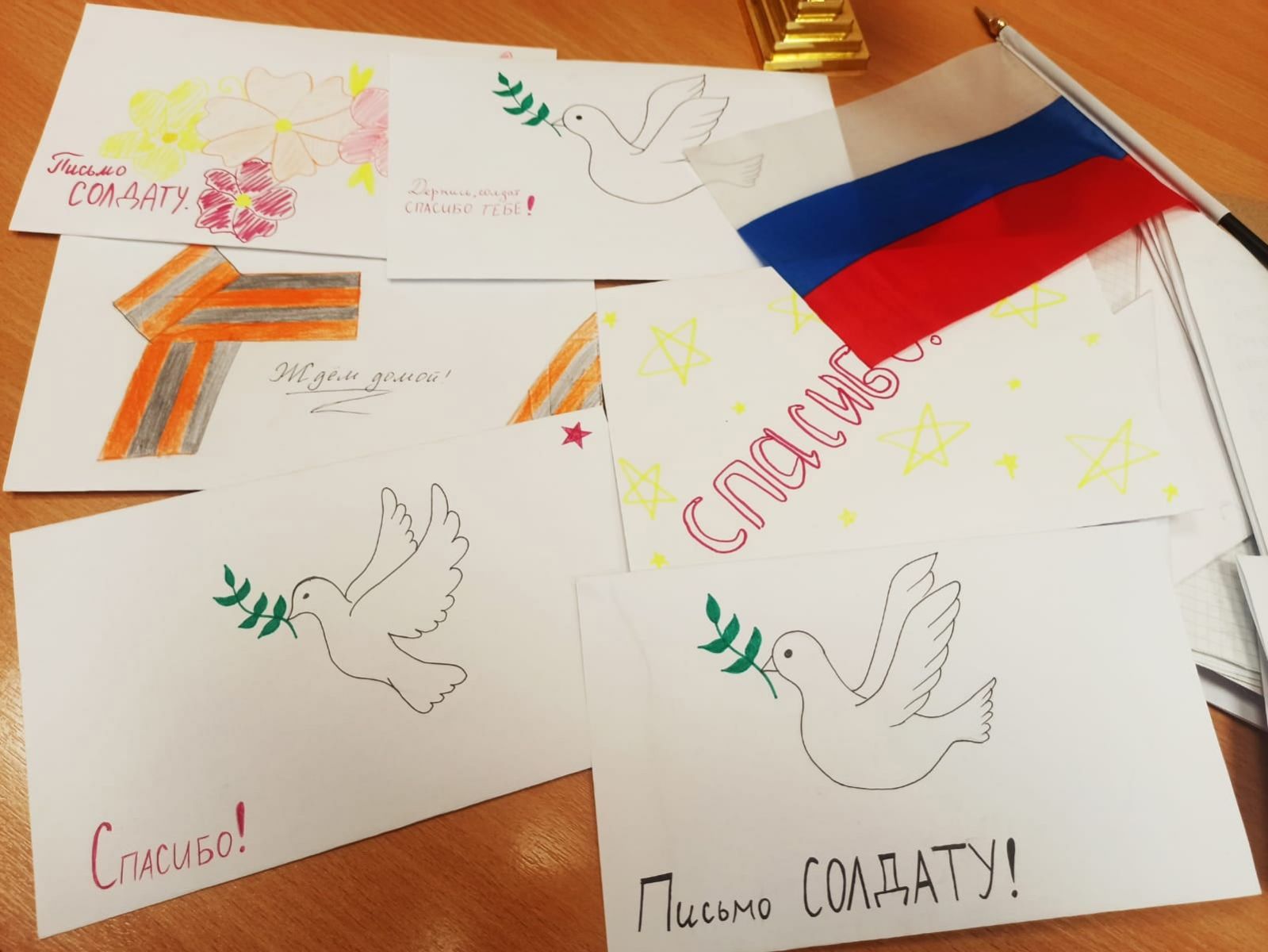 Студенты подготовили рисунки и открытки. Теплые слова поддержки отправят участникам специальной военной операции.