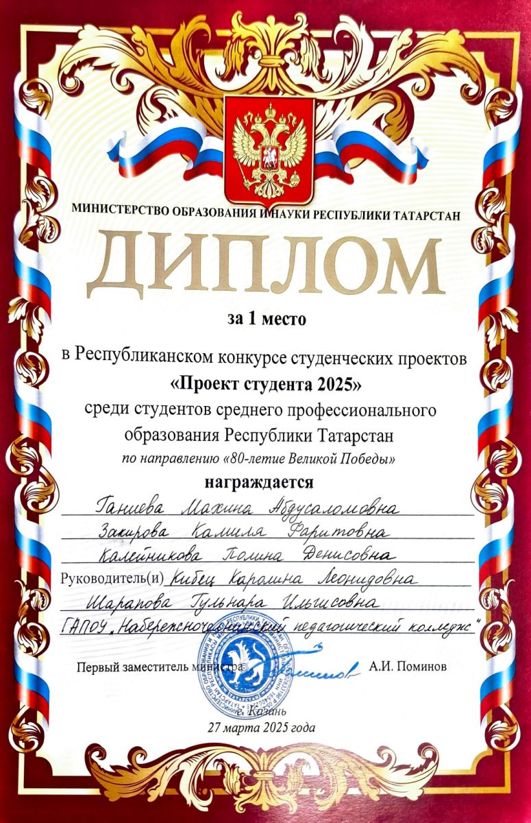 27 марта 2025 года на базе Казанского политехнического колледжа согласно календарному плану министерства образования и науки РТ прошел финал республиканского конкурса студенческих проектов «Проект студента- 2025» среди студентов учреждений среднего профессионального образования РТ.