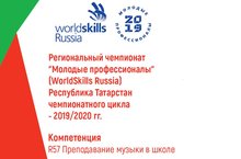 В целях содействия развитию профессионального мастерства, созданию системы профессиональной ориентации и мотивации к профессиональному образованию через конкурсы профессионального мастерства, согласно плану Министерства образования и науки РТ с 11 по 16 ноября 2019 г. на базе ГАПОУ «Набережночелнинский педагогический колледж» организуется работа площадки по компетенции «Преподавание музыки в школе» в рамках Регионального этапа VIII Национального чемпионата профессионального мастерства «Молодые профессионалы» (Ворлдскиллс Россия).