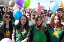 По проспекту Мира прошли колонны трудовых коллективов. Студенческая молодежь г. Набережные Челны так же приняла активное участие в демонстрации.