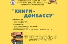 В рамках Всероссийской акции по сбору литературы для детей из ДНР, ЛНР, а также детей вынужденных переселенцев «Книги – Донбассу» детская общественная организация «Городской совет учащихся» проводит сбор книг в городе Набережные Челны. Цель данной акции – вернуть детям Донбасса возможность учиться и развиваться. Идея проведения акции родилась по итогам встречи с представителями правительства ЛДНР в Государственной Думе Российской Федерации. Хотя печатные издания не входят в списки жизненно необходимых вещей, их нехватка ощущается остро. В городе Набережные Челны сбор книг осуществляется централизованно, важно подчеркнуть, что принимаются детские книги на русском языке в хорошем состоянии: художественные, образовательные, публицистика, книги-игрушки для малышей, общеразвивающие, специализированная литература для детей и т.д. Особое внимание рекомендуется уделить классической детской литературе (А.Пушкин, К.Чуковский, А.Барто, А.Волков и др.), а также книгам по школьной программе, книгам про войну, блокаду и современным детским и подростковым произведениям. Акция продлится до 18 апреля 2022 года. Прием книг осуществляется по адресу: г. Набережные Челны ул. Столбовая д.53, МАУДО «Дом детского творчества №15». Координатор акции в г. Набережные Челны: Саримова Евгения Михайловна, (8552) 71-25-20