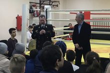Сегодня в зале бокса проходит традиционное спортивное мероприятие для юных боксеров нашего города - Открытое Первенство МАУДО «ДФОЦ «Дельфин №8» по боксу, приуроченное к празднованию Дня защитников Отечества, 75-летию Победы в Великой Отечественной войне. На нем присутсвует почетный гость Тюкменов Степан Михайлович, мичман морского дивизиона пограничных войск.