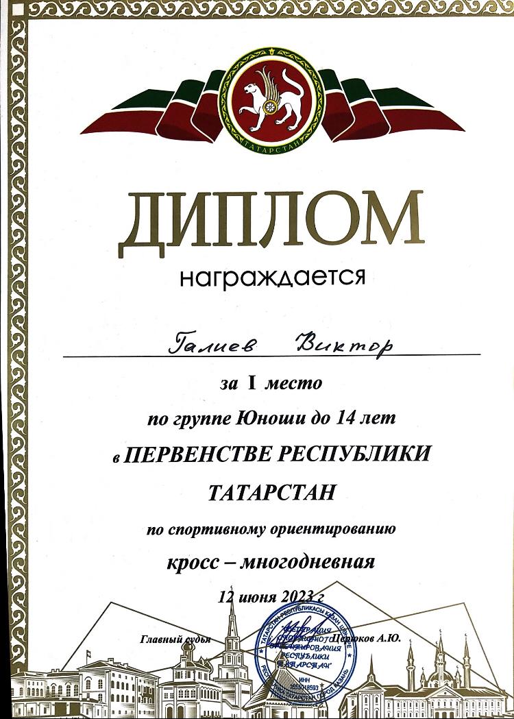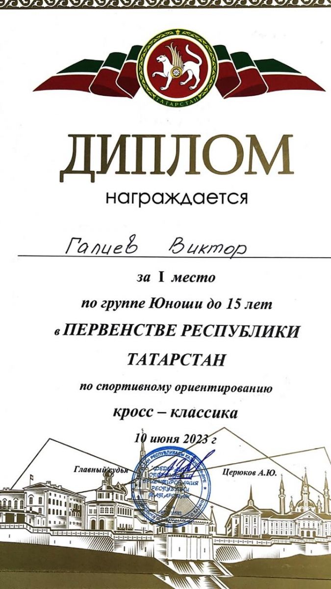 Галиев Виктор многодневный кросс 1 место, Галиев Виктор кросс-классика 1 место, Галиев Виктор кросс-лонг 1 место, Маликова Алиса кросс-классика 1 место, Ижболдина Анна кросс-классика 2 место, Ижболдина Анна многодневный кросс 3 место в Первенстве РТ по спортивному ориентированию (10-12.06.2023)