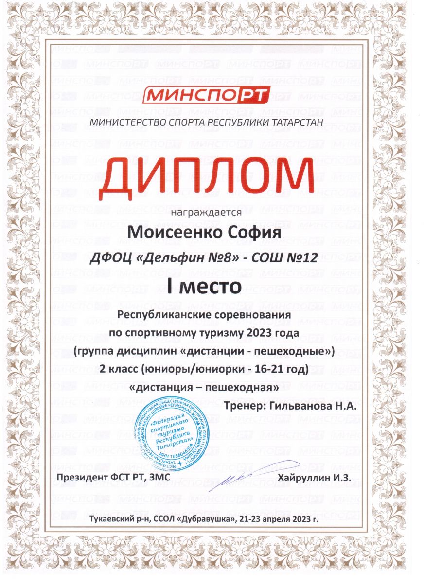 Моисеенко София 1 место, Моисеенко София 1 место, Шамсиева Яна 1 место, Вдовина Анастасия 2 место, Мавлютова Маргарита 2 место, Моисеенко София 2 место, Шамсиева Яна 2 место, Вдовина Анастасия 3 место, Ганиев Риназ 3 место, Дмитриев Георгий 3 место, Ганиев Риназ 3 место, Колдин Максим 3 место, Моисеенко София 3 место, Саляхов Динарт 3 место, Туктарова Залина 3 место, Шаяхметова Аделя 3 место на 1 этапе Кубка РТ по спортивному туризму (10-12.03.2023)