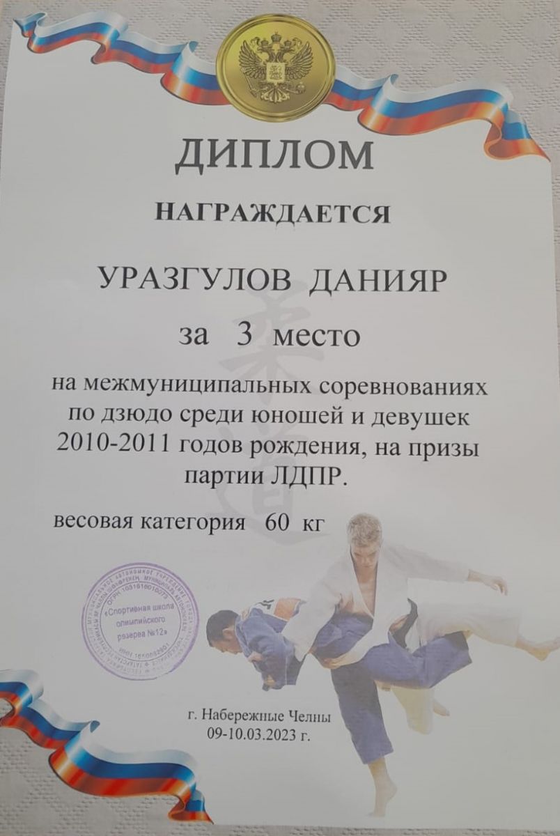 Уразгулов Данияр 3 место в Межмуниципальных соревнованиях по дзюдо (09-10.03.2023)