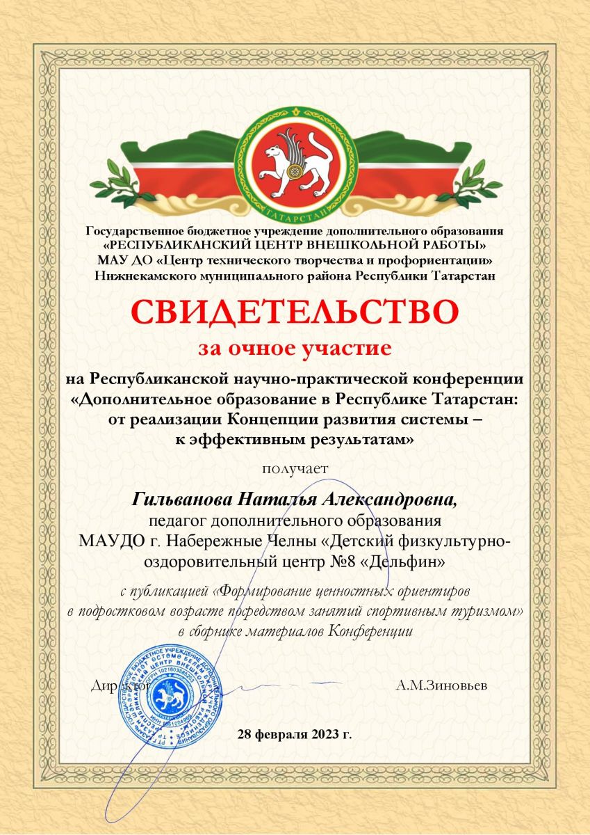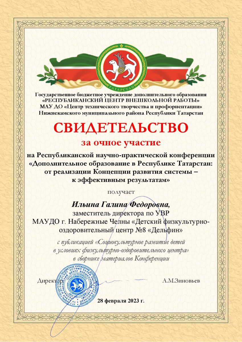 Ильина Г.Ф., Гильванова Н.А., Миниханова С.А., Шапошников А.П. - приняли участие в Республиканской научно-практической конференции "Дополнительное образование в Республике Татарстан: от реализации Концепции развития системы - к эффективным результатам" (28.02.2023 г.)