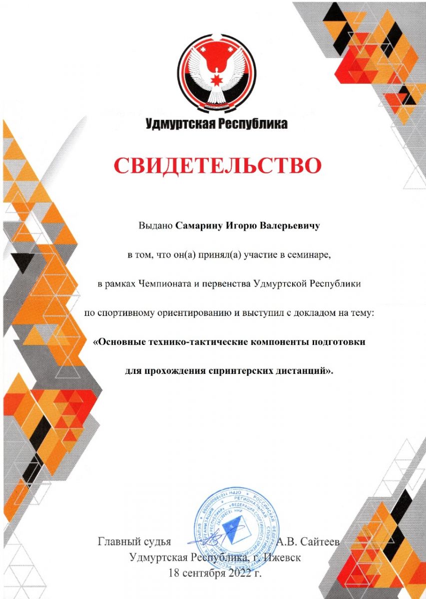 Нурисламов А.Д., Самарин И.В. - приняли участие в семинаре в рамках Чемпионата и Первенства Удмутской Республики по спортивному ориентированию (18.09.2022 г.)