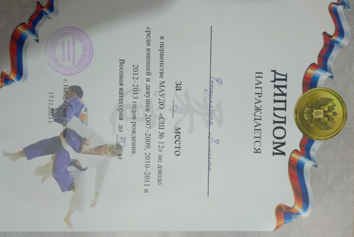 - Фаткуллина Ясмина 2 место, Зуева Софья 3 место в Первенстве СШОР №12 по дзюдо (17.11.2023)