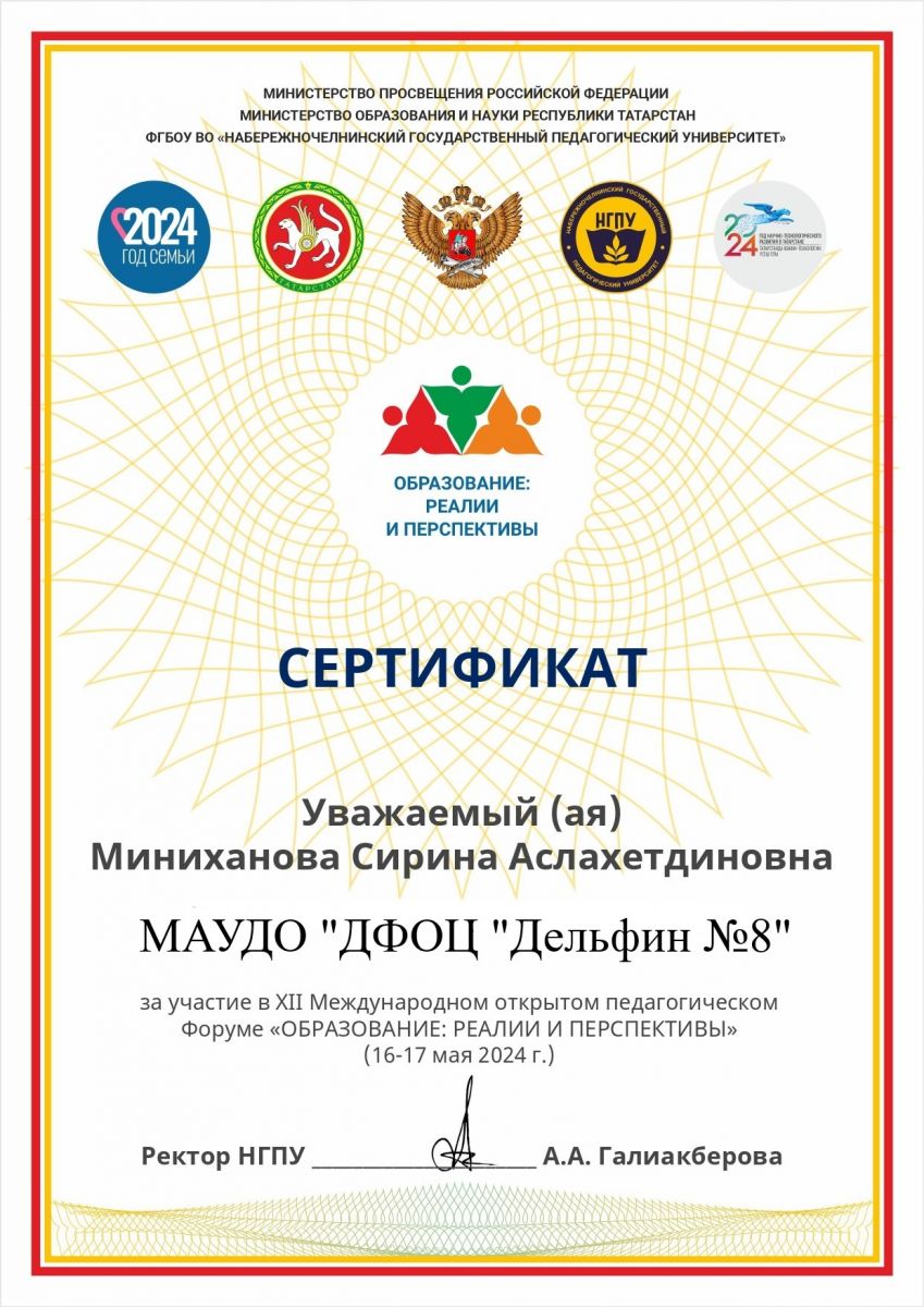 - Ильина Г.Ф., Миниханова С.А., Валинуров Р.Р. приняли участие в XII Международном открытом педагогическом форуме "ОБРАЗОВАНИЕ: РЕАЛИИ И ПЕРСПЕКТИВЫ"(16-17.05.2024)