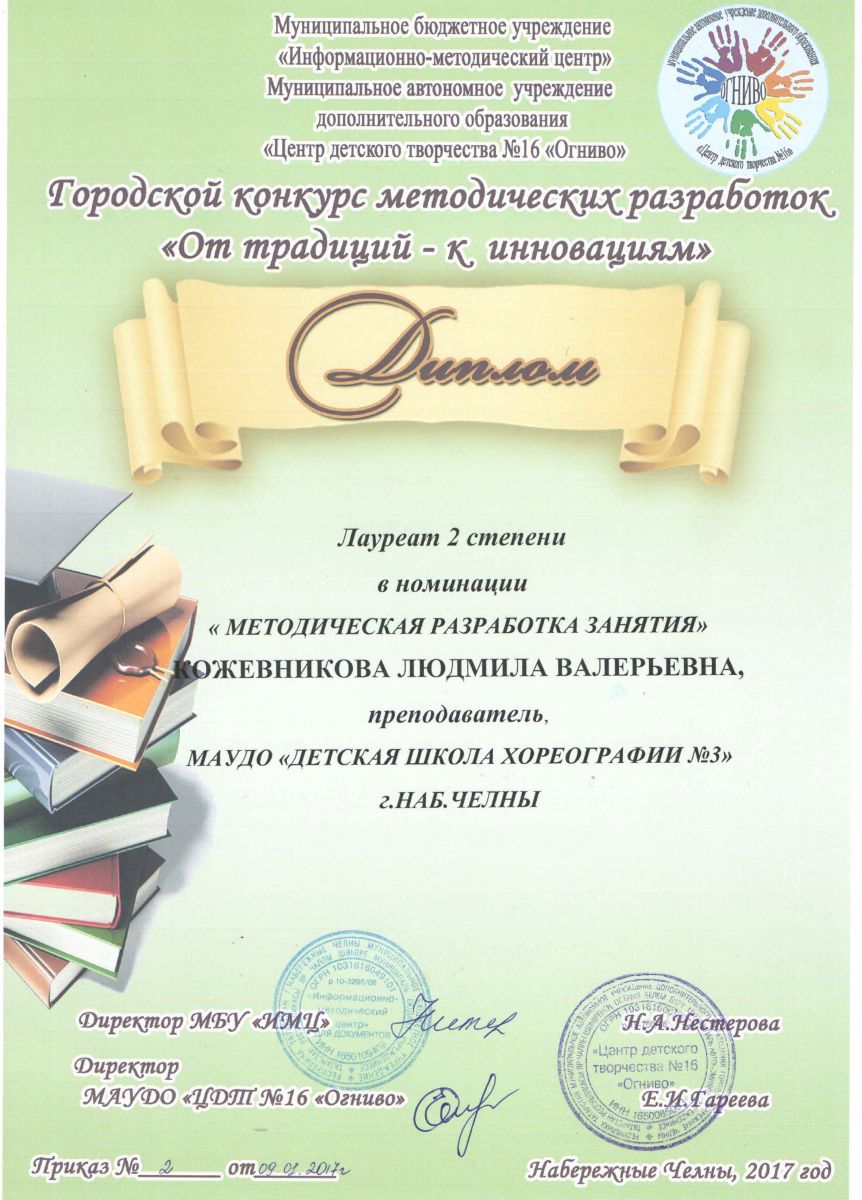 городской конкурс методических разработок Лауреат 2 степени Кожевникова.jpg